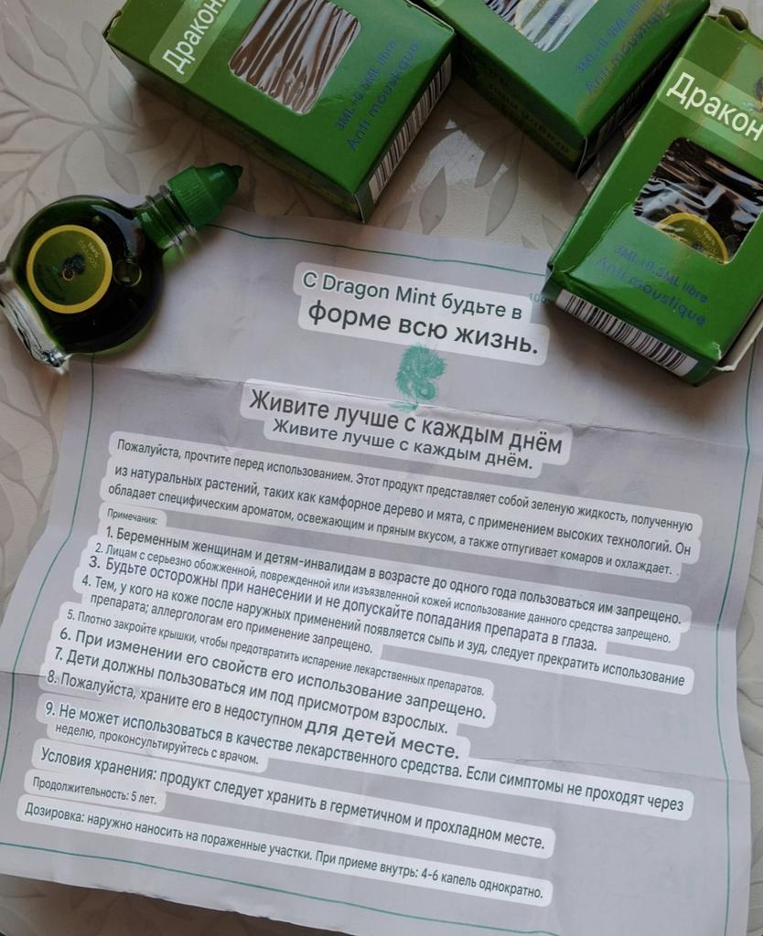 Охлаждающее масле Dragon Mints. Ранее я уже приобретала одну бутылочку этого продукта на пробу, и результат меня настолько порадовал, что я решила взять сразу комплект из трёх штук. Главное достоинство этого масла для меня, его потрясающий эффект при головной боли. Буквально пара минут после нанесения, и я чувствую, как напряжение постепенно уходит. Охлаждающий эффект очень приятный, не резкий, а именно такой, какой нужен для расслабления. Текстура масла лёгкая, не жирная, быстро впитывается. Аромат мяты свежий и натуральный, совсем не химический. Масло отлично подходит не только для головы, но и для массажа шеи и плеч после тяжёлого дня. Ну и в целом много для чего если верить картинкам на инструкции которая идёт в комплекте. Упаковка удобная, бутылочки компактные, их можно брать с собой. Комплект из трёх штук, очень выгодное решение, масла хватает надолго. Однозначно рекомендую это масло всем, кто ищет натуральное средство для снятия напряжения и головной боли. ⭐ Продавец упаковал товар в почтовый конверт с пупыркой внутри. ⭐ Трек номер отслеживался до почтового отделения. ⭐ В приложении пришло уведомление о готовности к выдаче заказа. ⭐ Доставка в Петербург заняла 21 день.