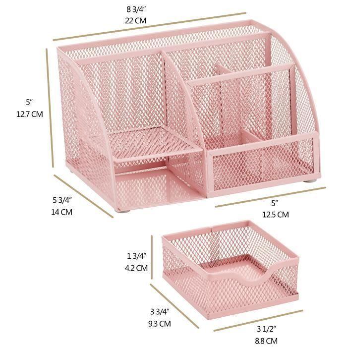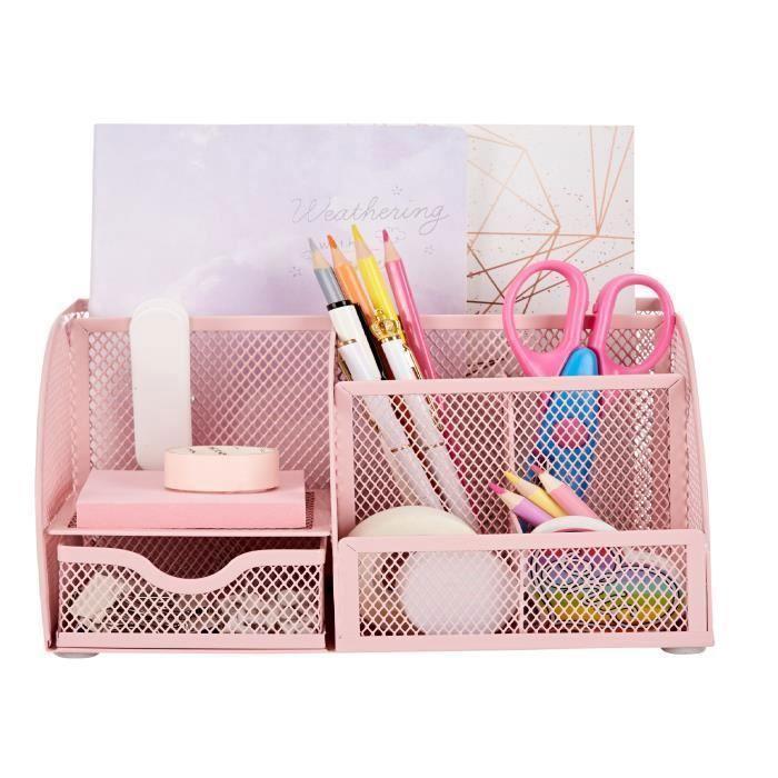 Organisateur de Bureau - EXERZ - EX348 - Métal - 7 Compartiments - Rose Clair