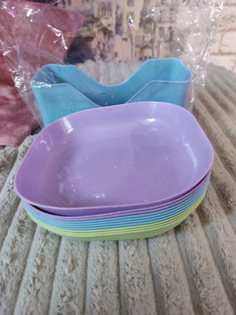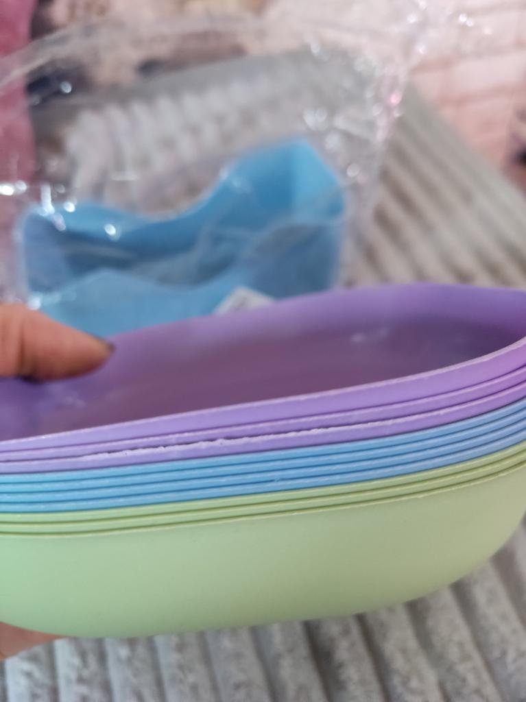 Тарелки заказала под цветочные горшки, с размером ошибочка, не вошли т. к. края загнутые. Но думаю в хозяйстве пригодятся. Пластик мягкий, гнëтся. Спасибо🙏💕