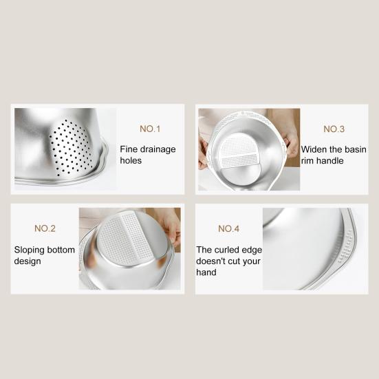 Представляем дуршлаг для промывки риса, изготовленный из пищевой нержавеющей стали, что обеспечивает долговечность и устойчивость к коррозии.. Этот инновационный кухонный инструмент имеет равномерно распределенные дренажные отверстия, которые эффективно и легко фильтруют рис, овощи и фрукты..
