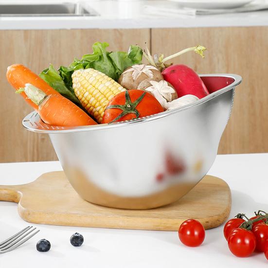 Уникальный наклонный дизайн: Инновационная наклонная конструкция корзины для слива обеспечивает быстрый и удобный слив жидкости, повышая эффективность при выполнении задач по приготовлению пищи.