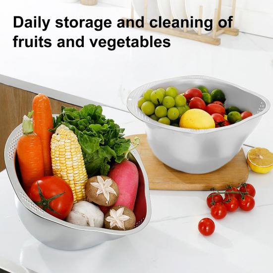 Эффективная дренажная система: Этот дуршлаг для овощей и фруктов с равномерно распределенными дренажными отверстиями эффективно фильтрует рис, овощи и фрукты с точностью и легкостью.