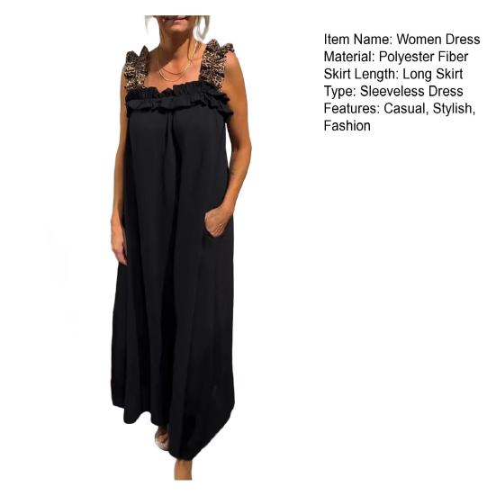Это элегантное женское платье со стильным дизайном на подтяжках идеально подходит для создания удобного и шикарного летнего образа.. Платье изготовлено из высококачественного полиэстера и отличается свободным и непринужденным кроем, что обеспечивает мягкость и легкость, идеально подходящую для ношения в течение всего дня..