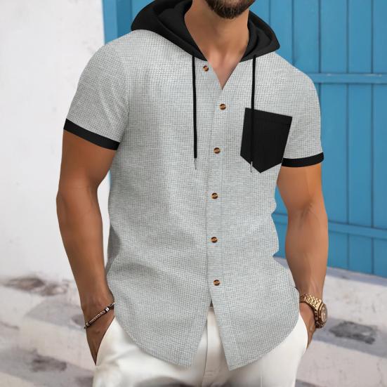 Стильный дизайн: Мужской топ прямого кроя с короткими рукавами и капюшоном, выполненный в стиле цветовых блоков, создающий универсальный и повседневный модный образ.