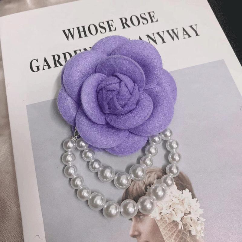 1 шт. Брошь-булавка Женская винтажная бижутерия Подарок Цветок камелии Тканевая корсажная брошь Жемчужная кисточка