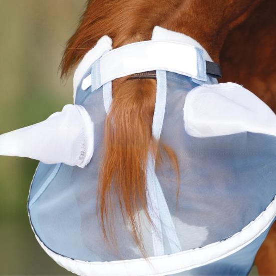 Легко крепящийся к обвязке, этот лицевой щиток разработан для удобства и безопасности.. Защитите и обеспечьте комфорт своей лошади с помощью этой практичной и надежной защиты морды от слепней.