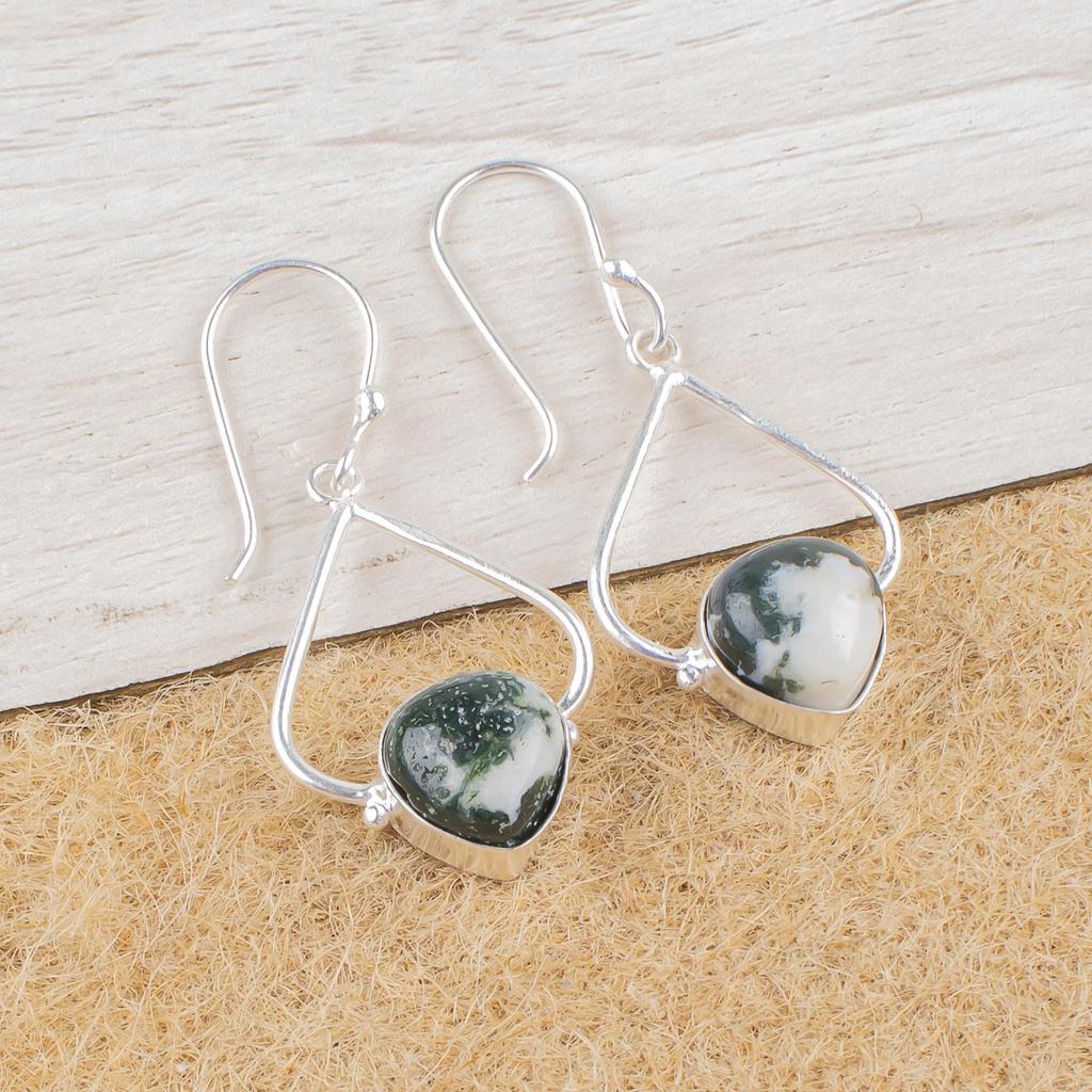 Украшения из мохового агата, серьги из стерлингового серебра 925 пробы, великолепные серебряные серьги ручной работы для свадебного подарка