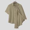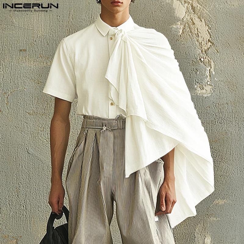 INCERUN Мужские рубашки с воротником-лацканом, коротким рукавом, пуговицами, оборками и слоями в стиле пэчворк, повседневные рубашки-накидки