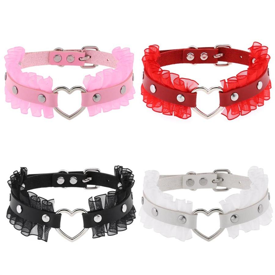 Новые Сексуальные кружевные Харадзюку ПУ кожаные цепочки Ожерелья с подвеской в виде сердца Женские Панк Шея Готика Черный Розовый Чокер Ожерелье Крутой Воротник