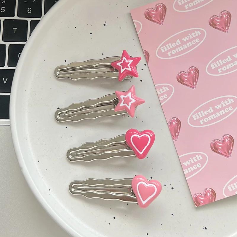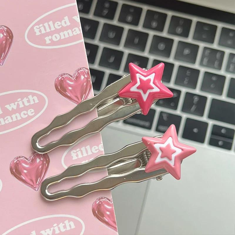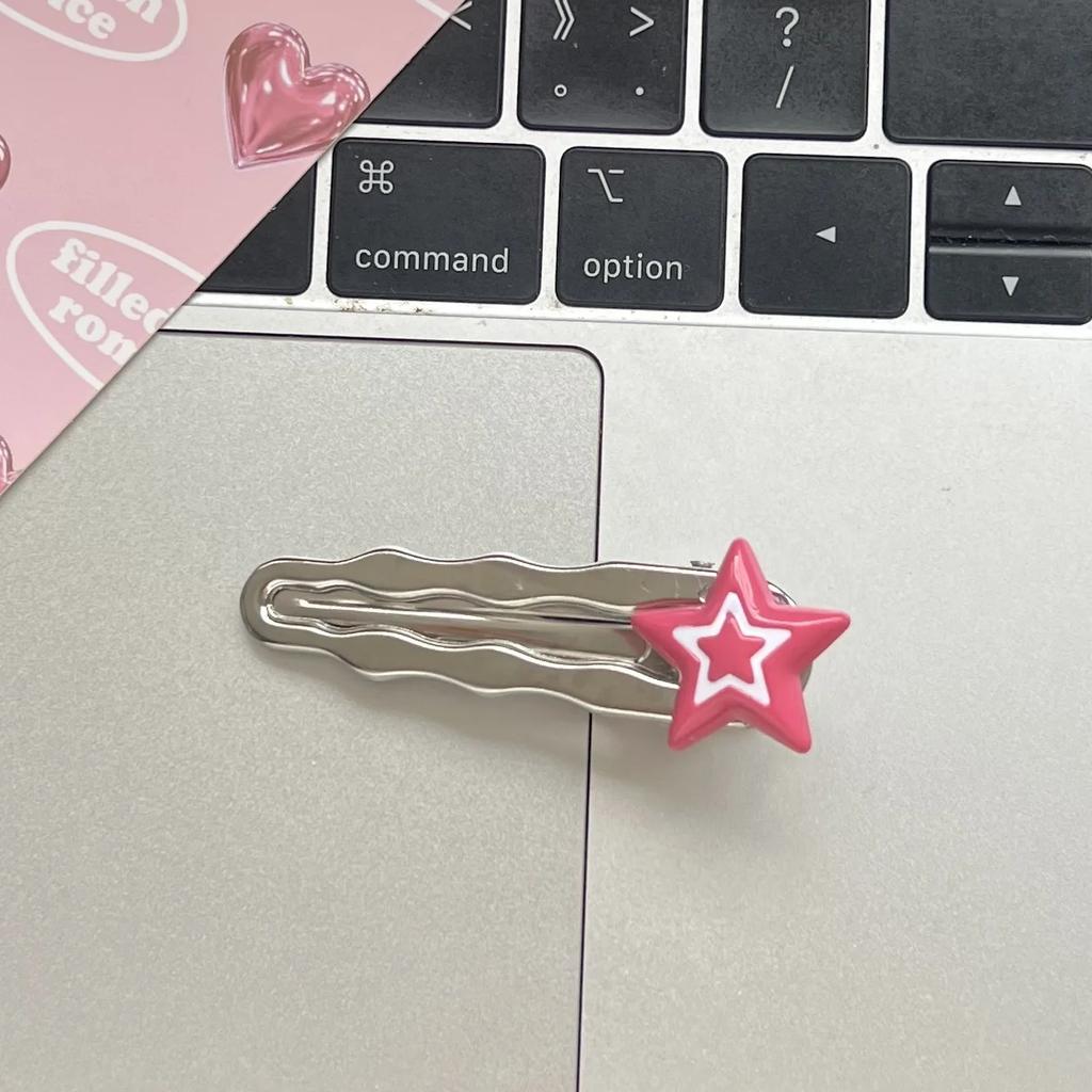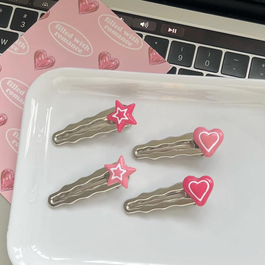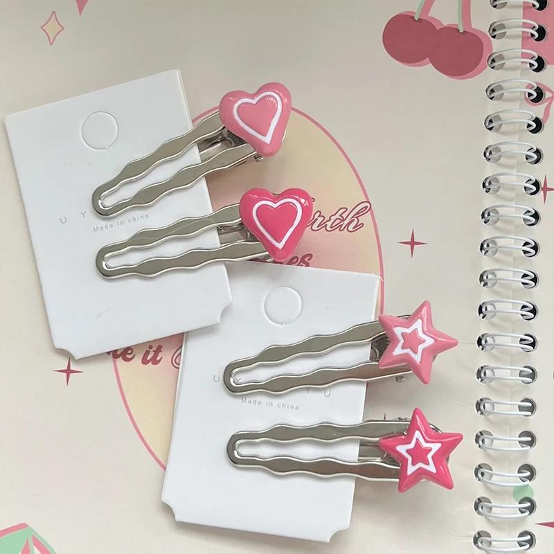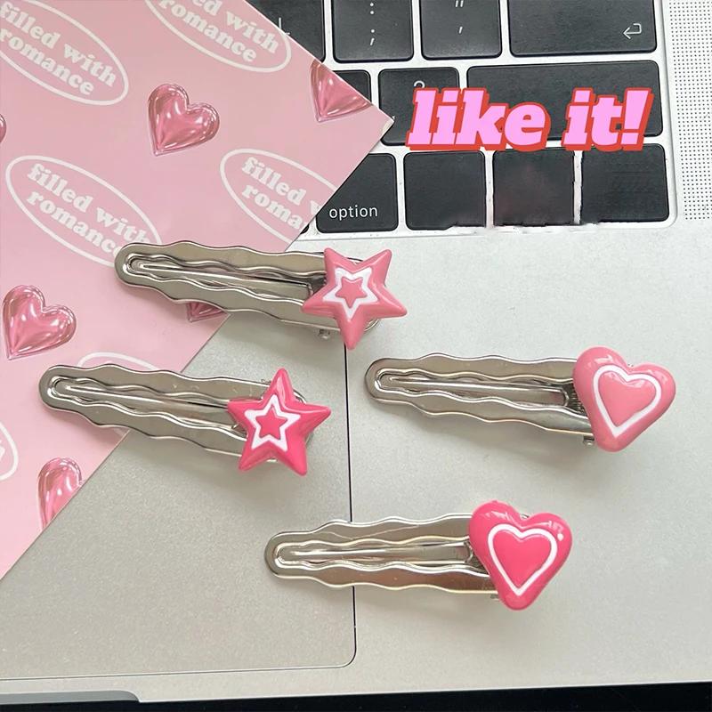 Новая корейская розовая заколка для волос со звездами для женщин Y2K милая волна металлическая заколка-автомат для волос для девочки милые акриловые аксессуары для волос