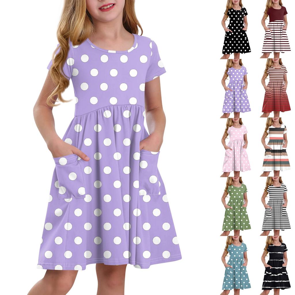 Детская юбка с круглым вырезом и коротким рукавом, платье принцессы, модное повседневное платье с карманами для девочек — купить товар онлайн с бесплатной доставкой до всему миру!