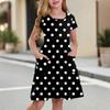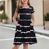 Детская юбка с круглым вырезом и коротким рукавом, платье принцессы, модное повседневное платье с карманами для девочек