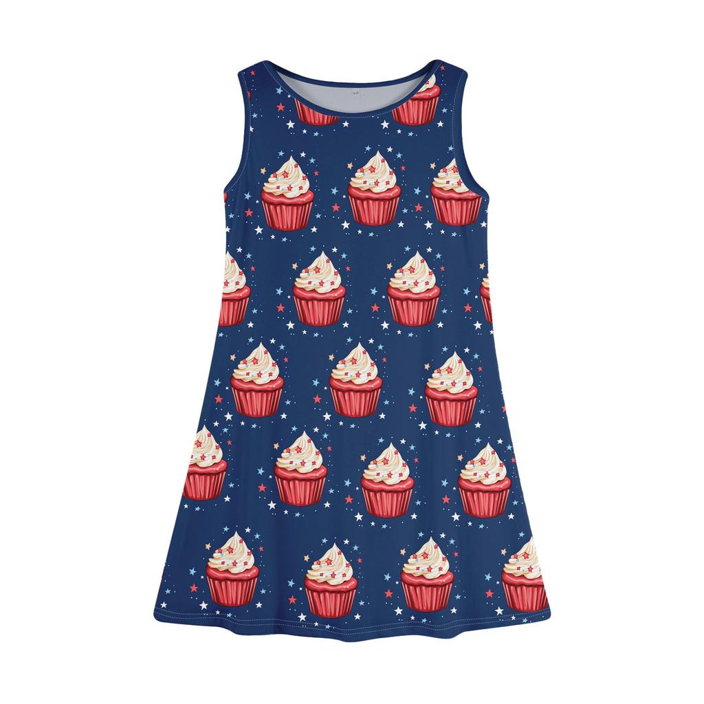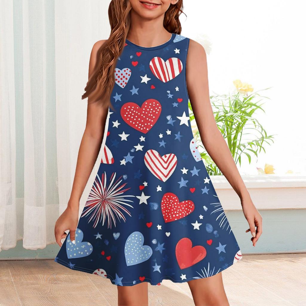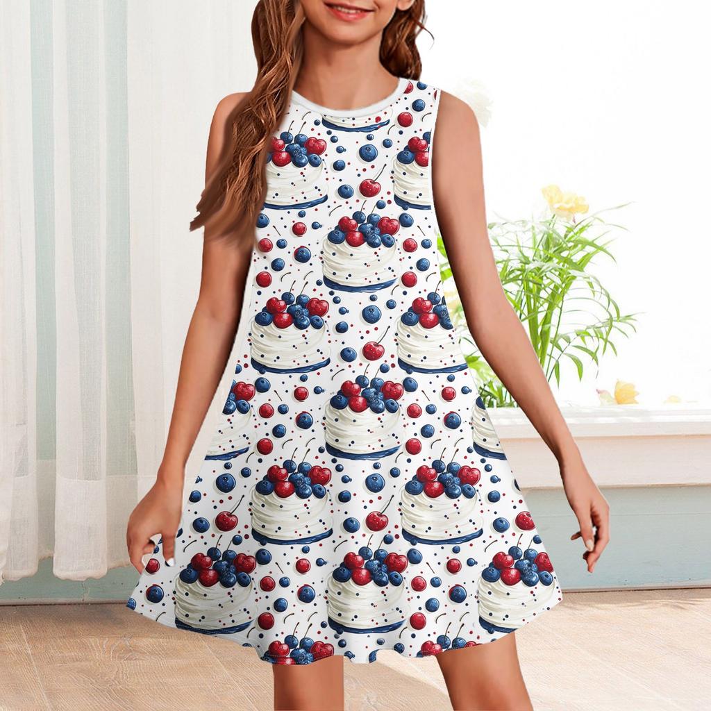 Летнее платье для девочек без рукавов с принтом в цвете, повседневное платье