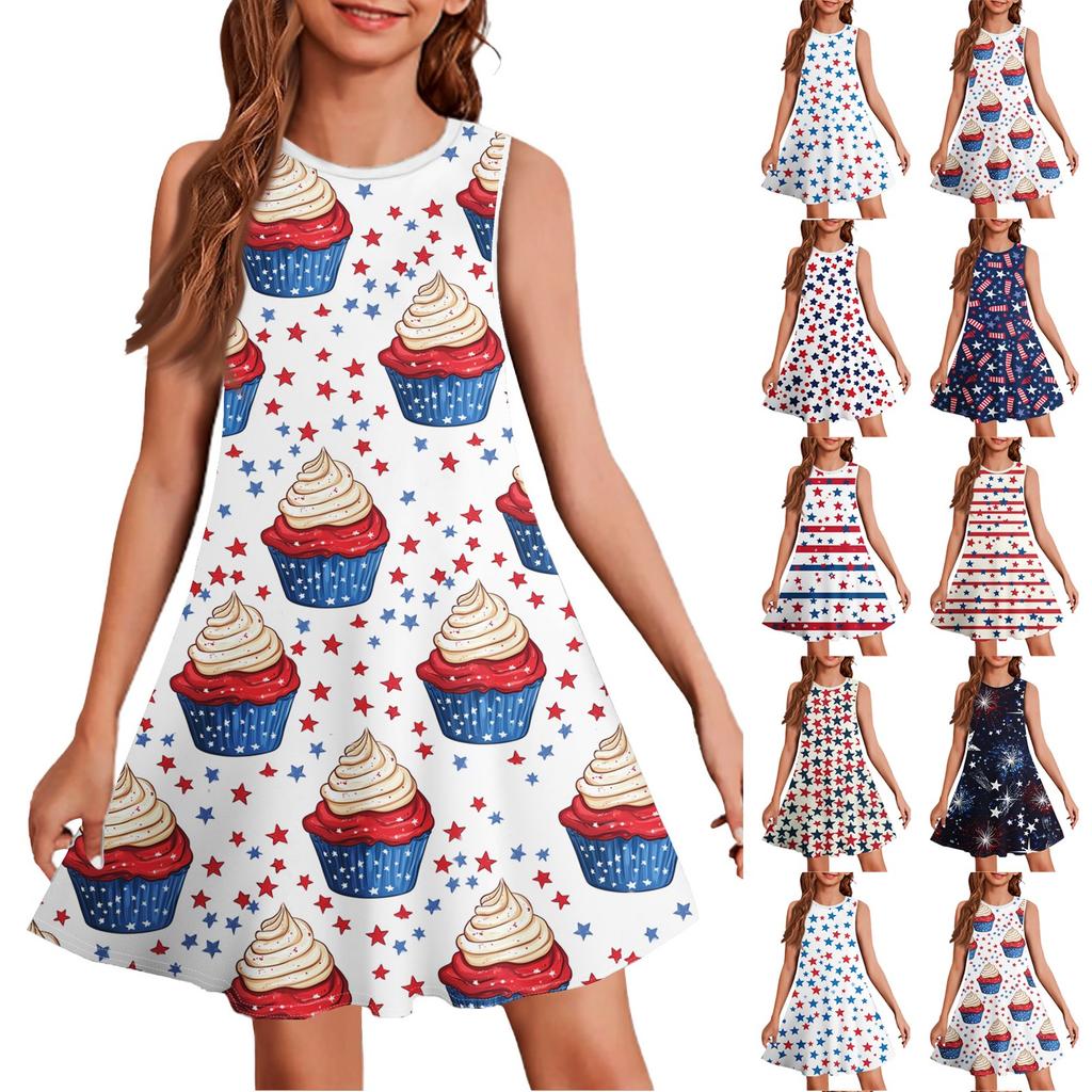 Летнее платье для девочек без рукавов с принтом в цвете, повседневное платье
