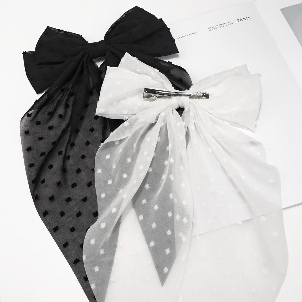 Модная заколка для волос с шифоновым бантом, элегантная женская однотонная пружинная заколка для волос, шпилька с бантиком в стиле ретро, простая повязка на голову, аксессуары для волос для девочек