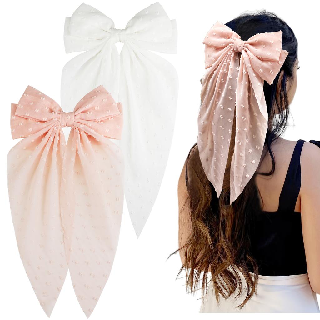 [ЛЕНТЫ ДЛЯ ДЛИННЫХ ХВОСТОВ]: Заколки-банты с большим бантом и длинным хвостом, металлическая клипса надежно фиксирует волосы, хорошо держит густые или вьющиеся длинные волосы