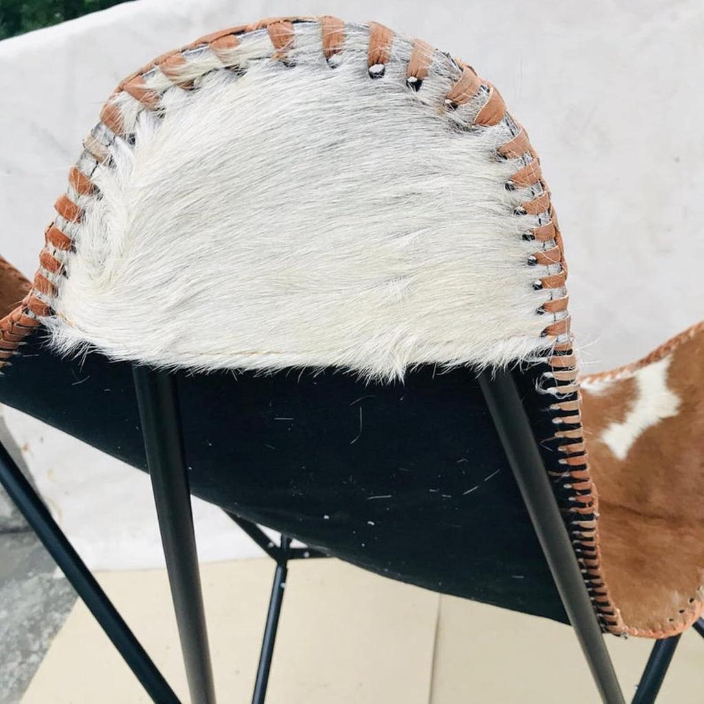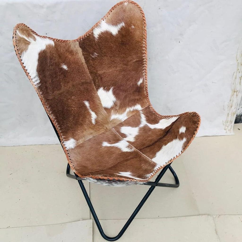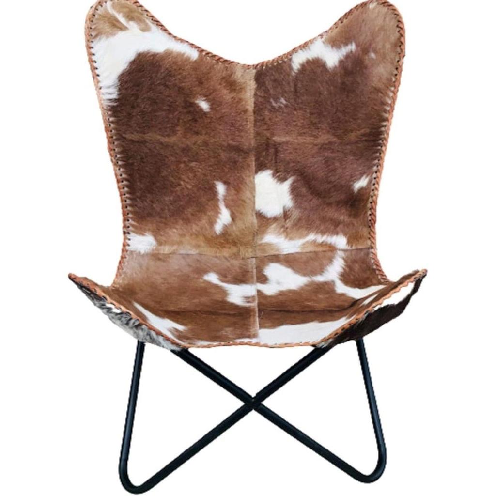 Кожаное кресло-бабочка Коричневое Белое Кресло Мебель, Гостиная Стулья из шкуры, Большое
