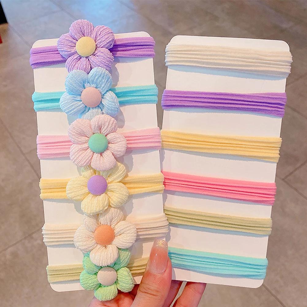 6Pcs/Set Children's Headbands Flower Hair Ring Sweet and Cute Ponytail Hair Ring Little Girl Braided Towel Ring Hair Accessories
