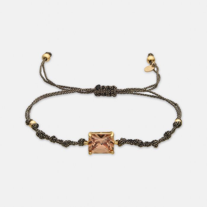Bracelet - Askuo - Argent 925 - Zirconium Champagne - Finition Or 18k - Réglable