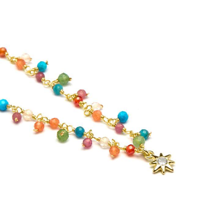 Luxenter Collier de cristal multicolore fini en or jaune 18K - Lision