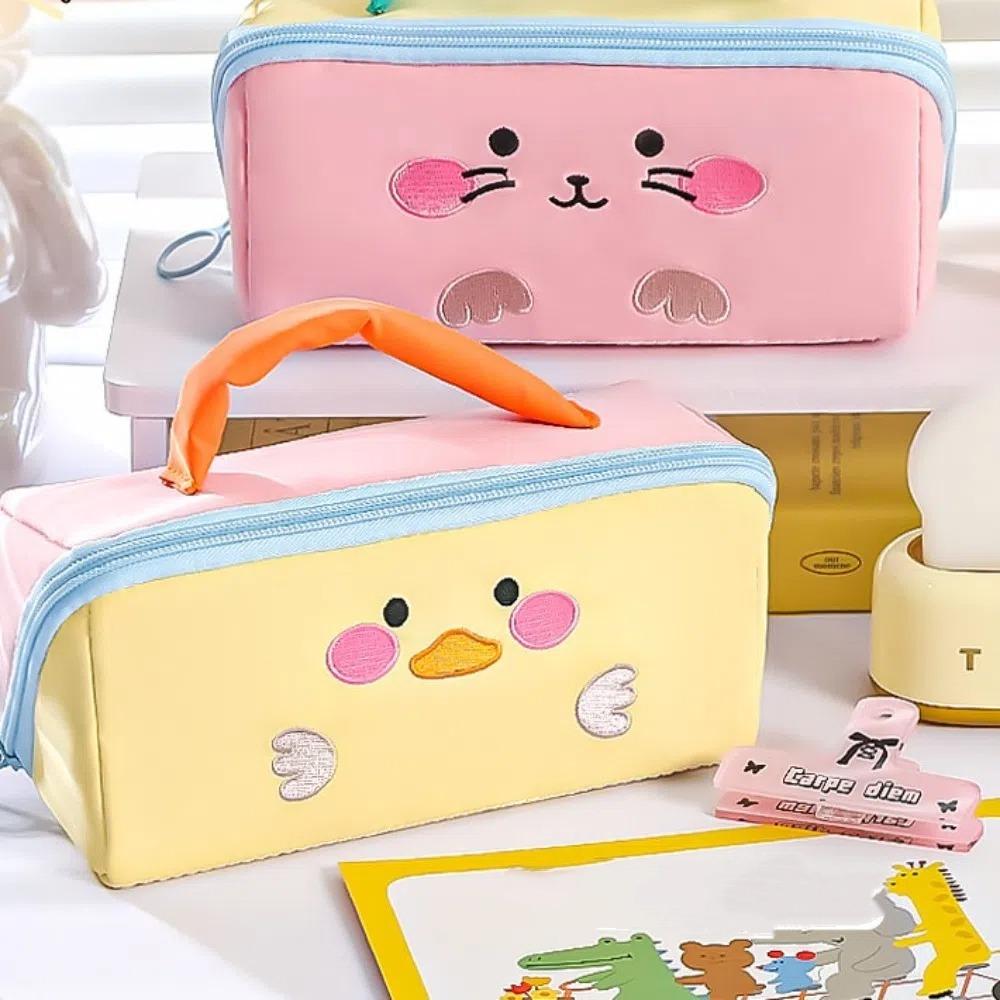 Пенал большой вместимости с мультяшным рисунком, утка, кролик, динозавр, косметичка, сумка для хранения канцелярских принадлежностей, для студента