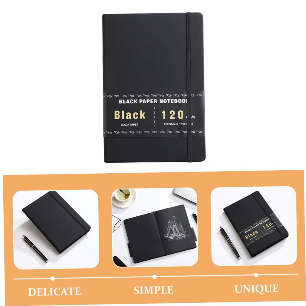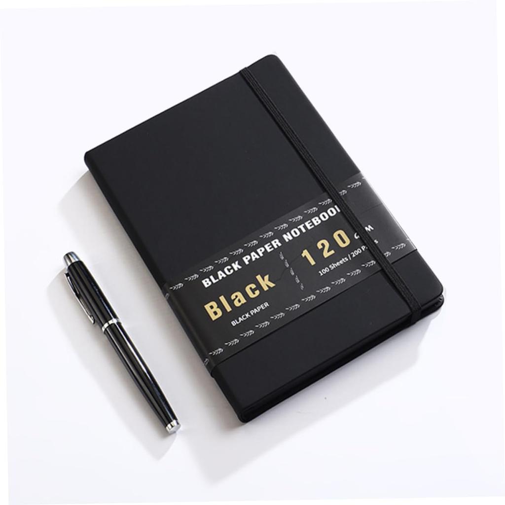 Lurrose 200 Пустой блокнот из черной бумаги Блокнот с миллиметровкой Блокнот для эскизов из черной бумаги Школьный блокнот Блокнот в линейку Блокнот для заметок Черный