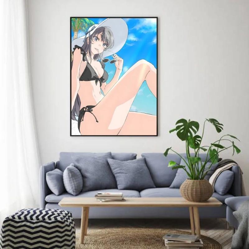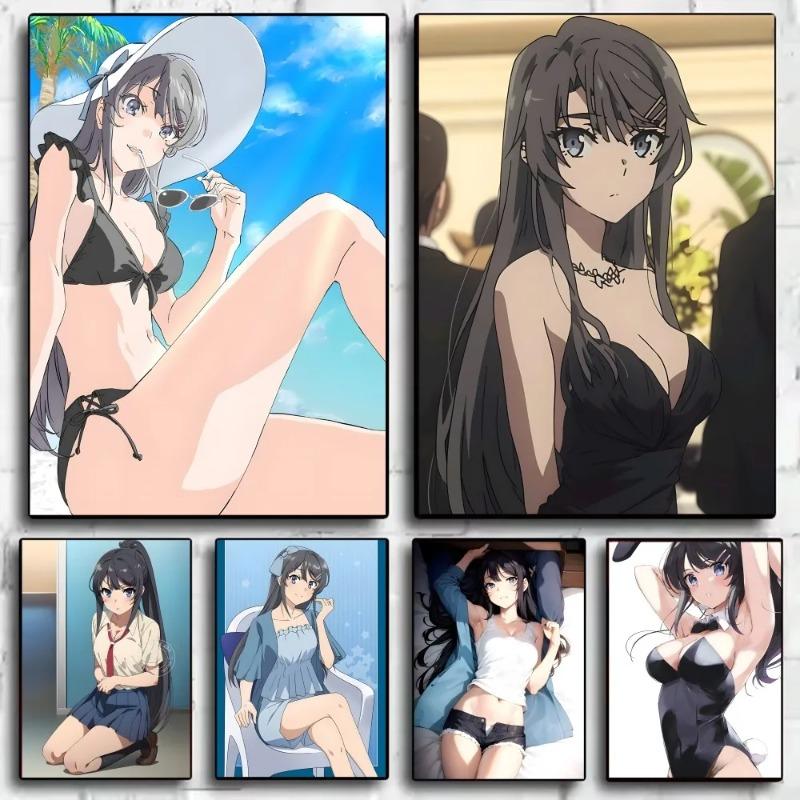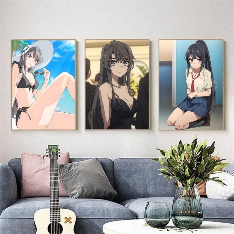 Аниме Сакурадзима Маи Постер HD арт липкий на стену водонепроницаемый для дома гостиной спальни бара эстетичное украшение