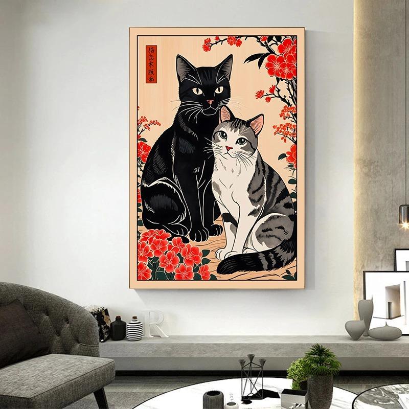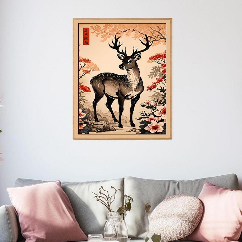 Традиционное японское китайское китайское искусство животных холст принт винтажный тигр лиса олень кит ретро постер иллюстрация декор для стен
