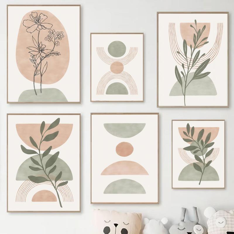 Бохо Зеленый Лист Солнце Радуга Геометрия Настенное Искусство Холст Живопись Абстрактные Линии Постеры и Принты Картины для Декора Гостиной