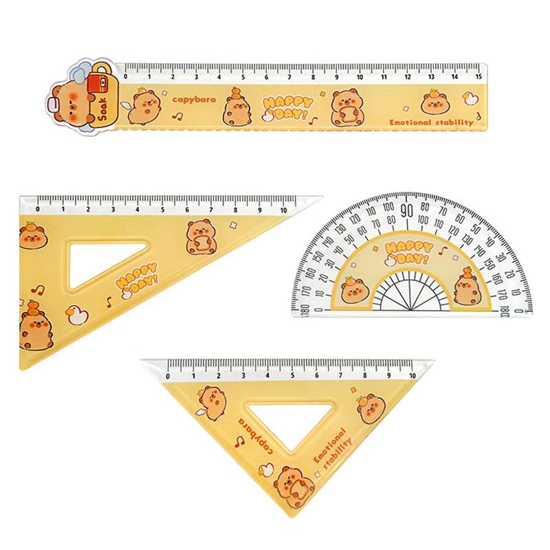 В коплект входит: 1 комплект(Линейка 15 см + линейка равнобедренного треугольника + линейка прямоугольного треугольника + линейка для измерения угла 180)