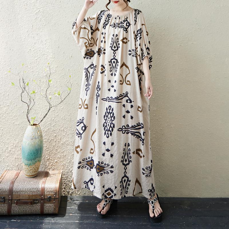 Хлопковое винтажное платье в горошек с цветочным принтом, с коротким рукавом, большого размера, новинка, женское, повседневное, свободное, макси, длинное летнее платье