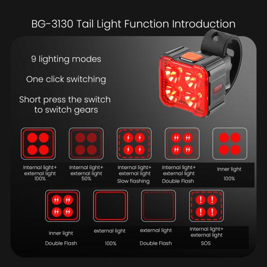 Универсальные режимы освещения: Легко переключайтесь между режимами яркого света, слабого света и вспышки, чтобы адаптироваться к различным сценариям, таким как ночные поездки по городу или катание на горном велосипеде, улучшая видимость и безопасность.