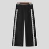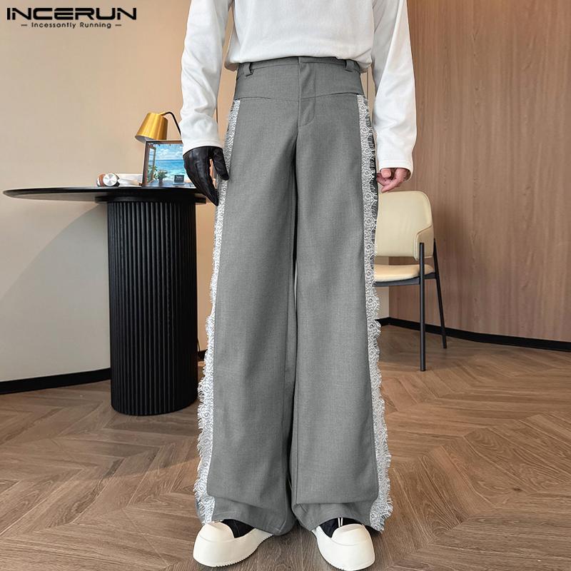 INCERUN Мужские повседневные длинные прямые брюки на молнии с кружевной вставкой сбоку на талии