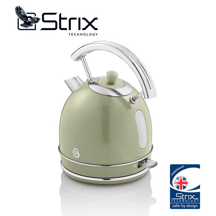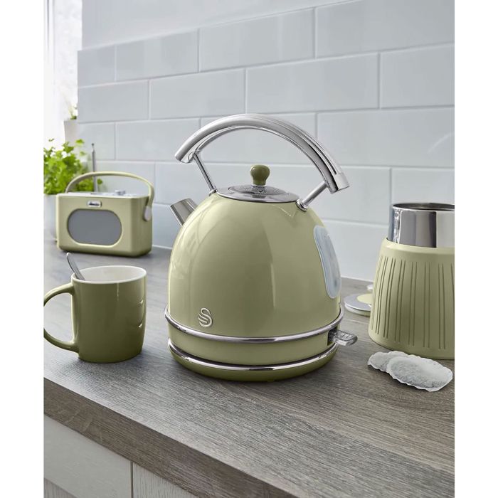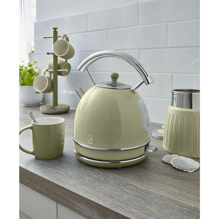 Retro Bouilloire, 1,8 L, Acier Inoxydable sans BPA, Résistance Cachée, sans Fil SWAN SK14630GNEU 3000W Vert 53746