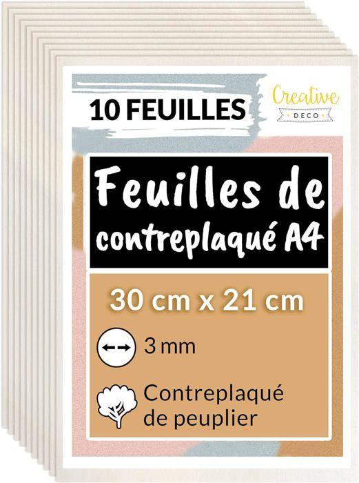 Panneau de Contreplaqué en Bois - Creative Deco - A4 - 10 pièces - 300 x 210 mm - Antidérapant