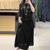 Женский однотонный повседневный хлопковый льняной комплект с рукавами 3/4 и круглым вырезом, топ и брюки