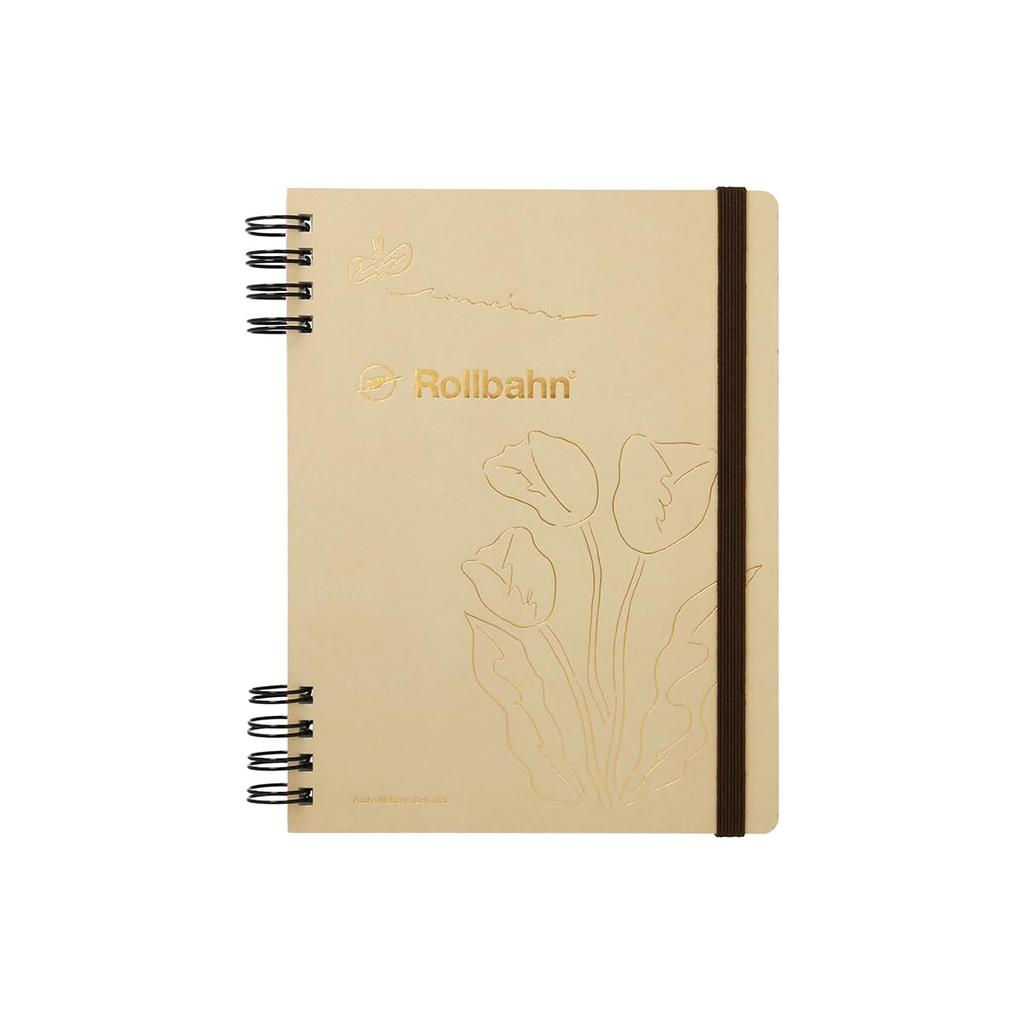 "Rollbahn Flexible" позволяет вам свободно менять страницы. Выпущен набор обложек, удобный для использования для «Дневника жизни», в котором записываются различные ежедневные события.. Он разработан в сотрудничестве с графическим дизайнером Асукой Вакитой. В этот набор входят «Rollbahn Flexible Cover 360°», три типа сменных блоков с яркими цветами, бумажный индексный лист и бумажный карман-конверт. Рекомендуется не только для дневников, но и для благодарностей, записей о прочитанном, записей о прогулках, заметок с идеями, домашних счетов и записей о здоровье.. Вы можете наслаждаться записью своей повседневной жизни в одной книге, настраивая ее в соответствии со своими потребностями.. Базовый блок, сменные блоки и аксессуары входят в комплект, чтобы каждый мог легко наслаждаться ведением дневника жизни.. Передняя и задняя обложки сделаны из бумаги.. Обложка оформлена цветочным мотивом, арт Асуки Вакиты, созданным для этого изделия, с тиснением золотой фольгой. Входящие в комплект сменные блоки — это «Блок для заметок», разделенный на четыре секции, идеально подходящий для дневников и обзоров, «Сетка 2 мм» с сеткой 2 мм, позволяющая организовывать элементы и легко писать мелким почерком, и формат «Месяц, День и Дата» вверху, позволяющий легко нумеровать даты, предоставляя вам большую свободу.
