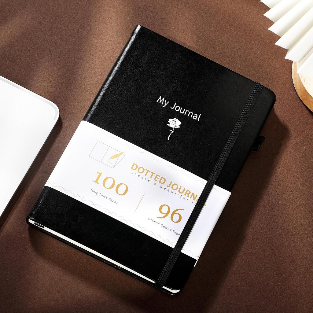 CAGIE Блокнот A5 Блокнот Стильный Дневник 192 страницы в точку Твердый переплет Классический блокнот с держателем для ручки Милый Деловой 100 г/м² Бумага, устойчивая к чернилам для