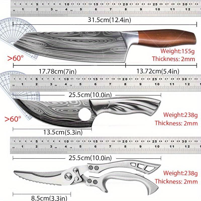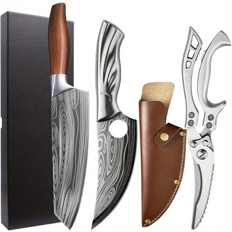 Набор из 3 кованых вручную поварских ножей из дамасской стали для кухни, многоцелевой нож для обвалки мяса, тесак для мяса, ножницы для овощей, нож для птицы