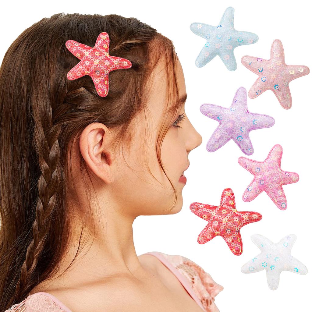 Высокое качество: Заколки для волос в виде морских звезд изготовлены из ткани и украшены пайетками, металлические зажимы-аллигаторы могут прочно захватывать даже самые тонкие волосы, обеспечивая удобство ношения.