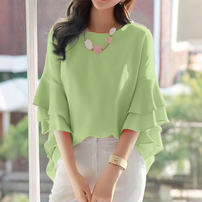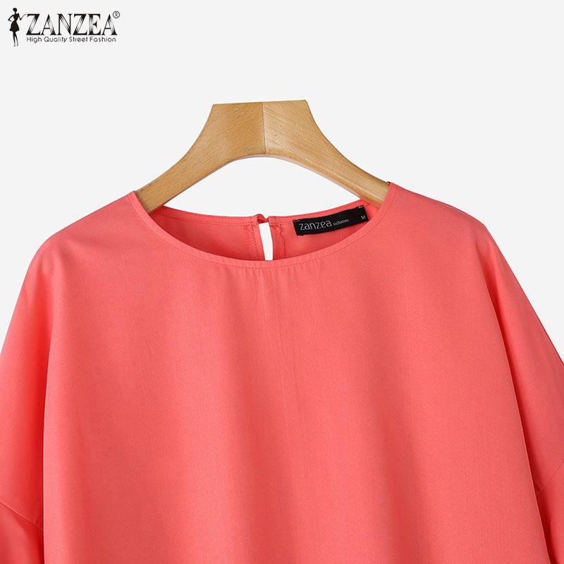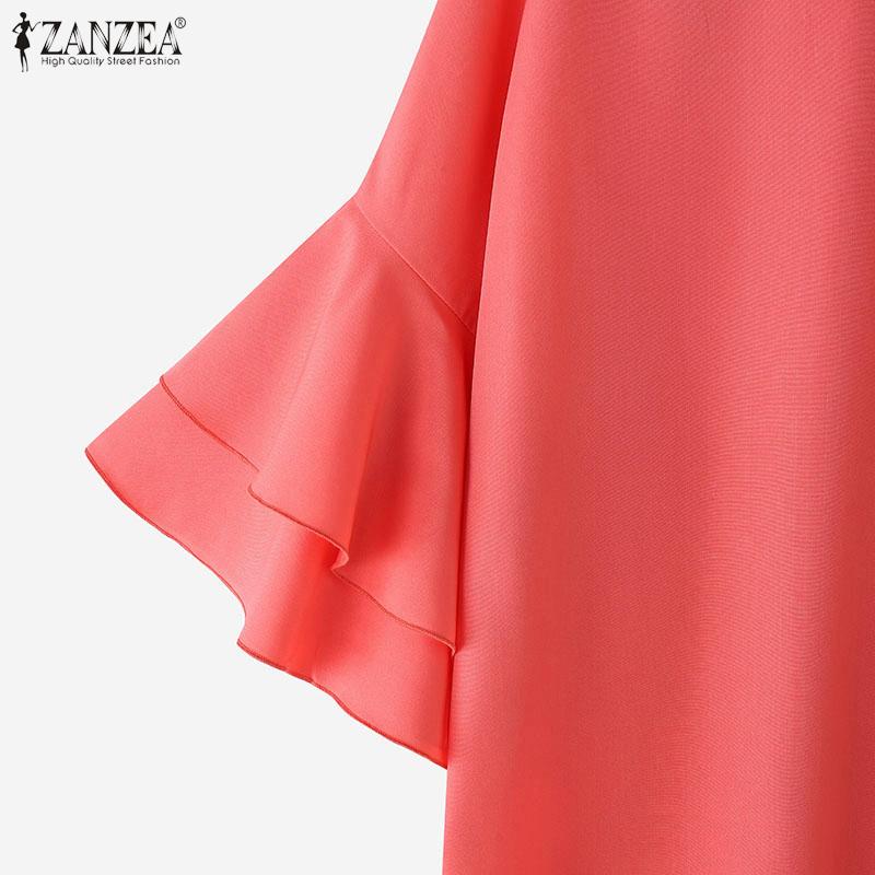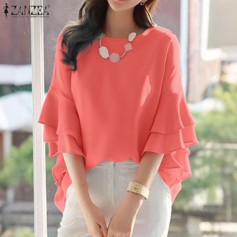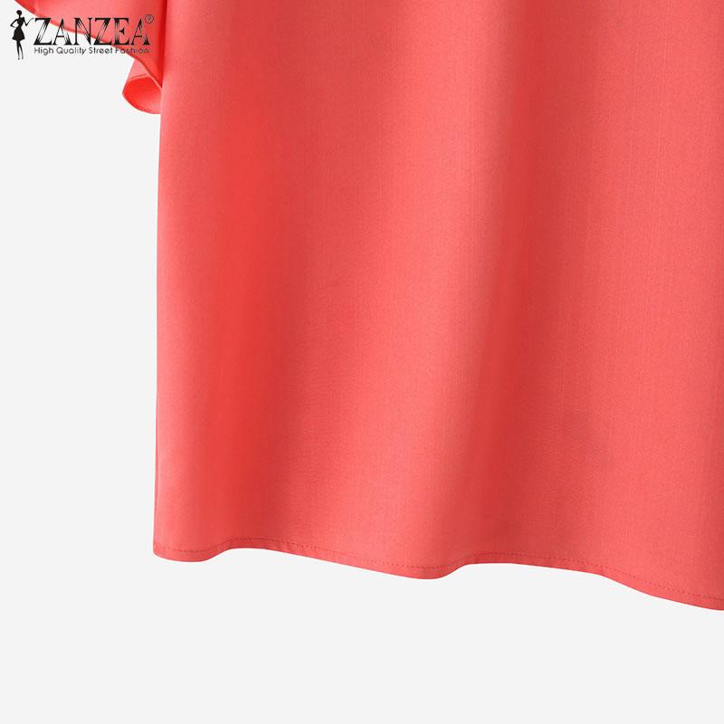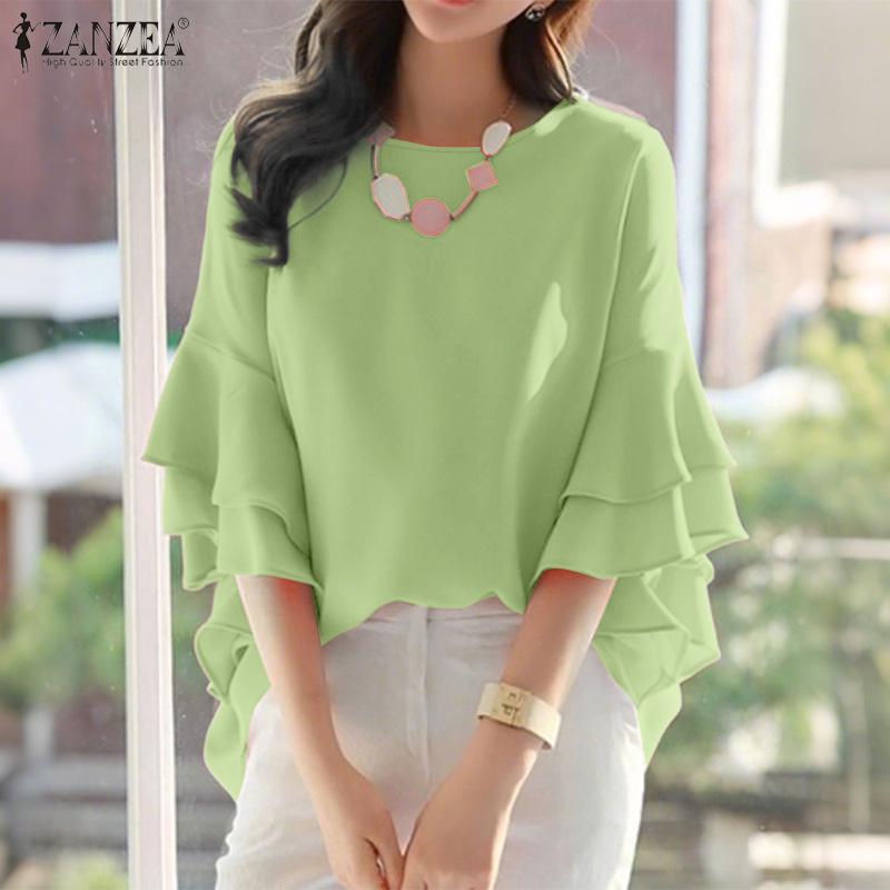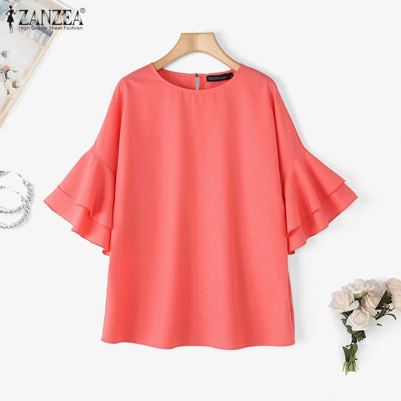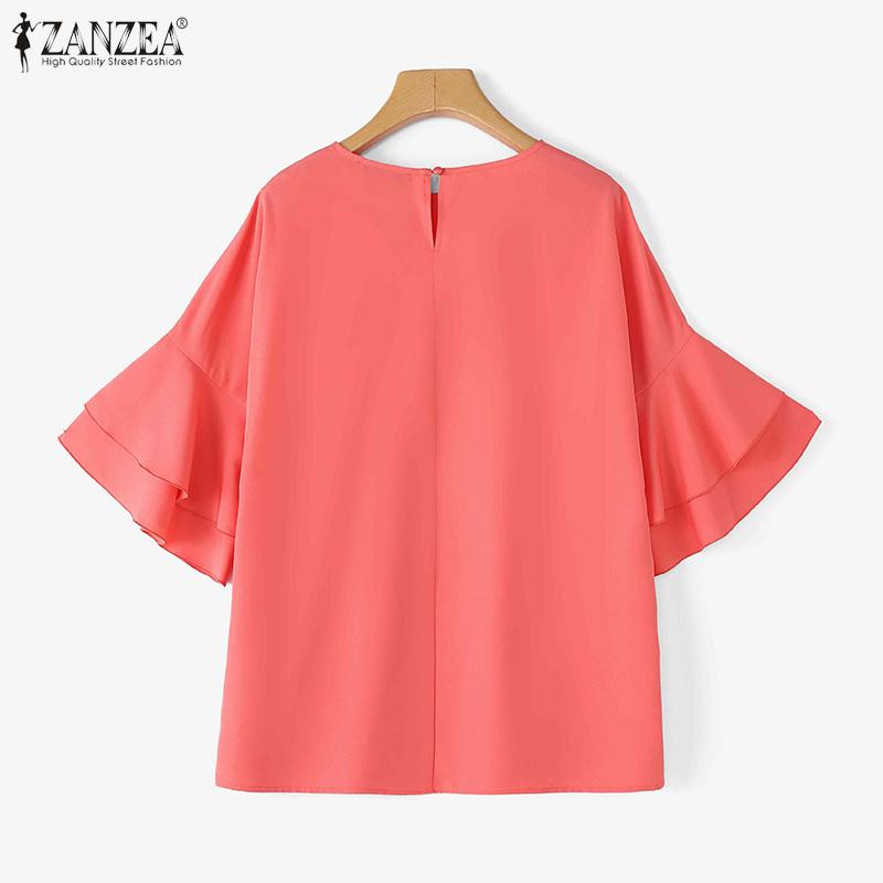 ZANZEA Женская повседневная блузка с круглым вырезом и оборками на рукавах