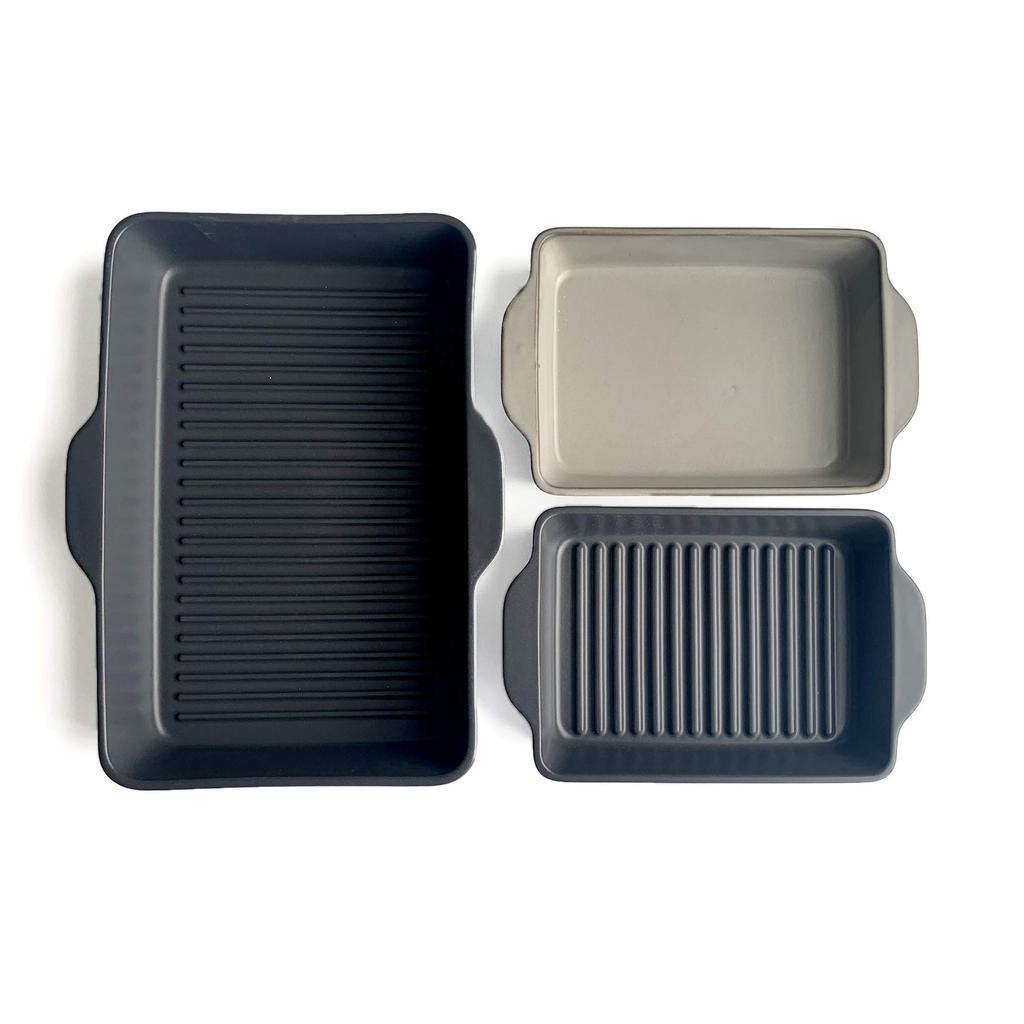 Размер S составляет половину размера L, поэтому два можно использовать рядом на обычном гриле.. Один можно использовать для еды, приготовленной на гриле, а другой для десерта, так что два блюда можно приготовить за один раз, экономя время. Если поставить свежеприготовленную еду на стол, это также можно использовать как посуду, уменьшая количество посуды для мытья.. Простой и стильный дизайн добавляет стильный штрих вашей обеденной зоне.