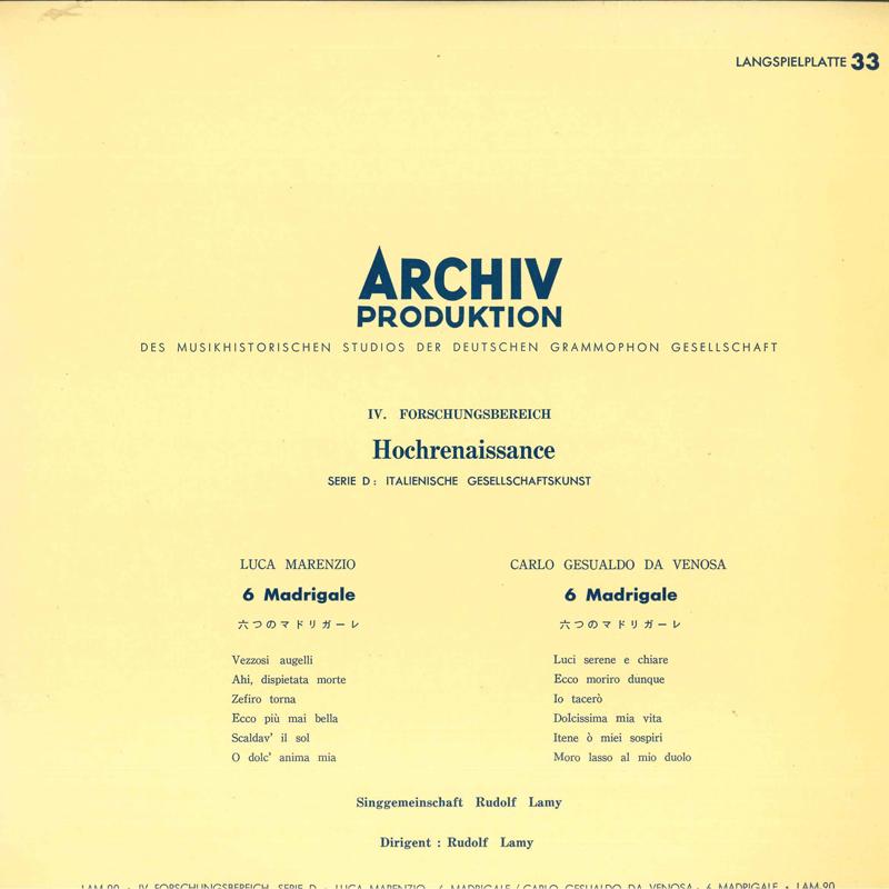 ARTIST: Marenzio, Gesualdo, Rudolf Lamy
