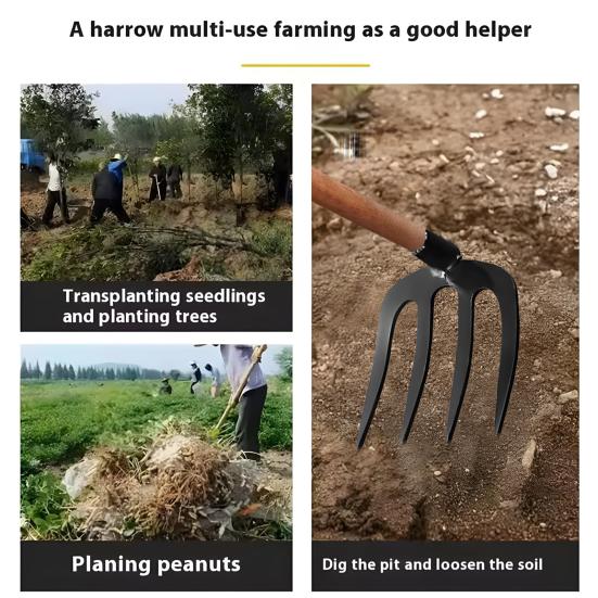 Идеально подходит для прополки и выкапывания: Конструкция с четырьмя зубьями позволяет легко удалять сорняки, вставляя зубья в почву и выдергивая сорняки с корнем.. Он особенно эффективен в углах и узких пространствах, куда трудно добраться традиционными инструментами.