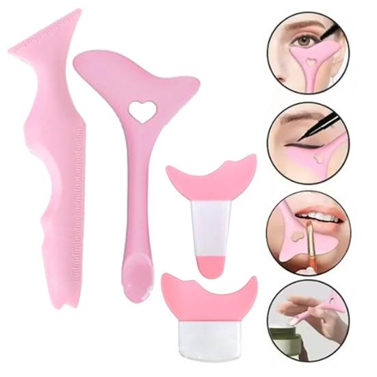 Этот экономичный набор включает в себя силиконовую линейку с делениями для создания симметричного 3D-образа, вспомогательное устройство для подводки глаз, длинный инструмент для подводки верхнего века и короткий инструмент для подводки нижних ресниц.. Четыре шаблона для подводки глаз разного размера универсальны и позволяют не только создавать точные стрелки, но и наносить тени для век, помаду и придавать форму бровям.