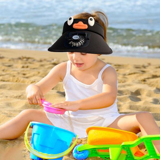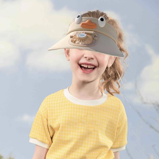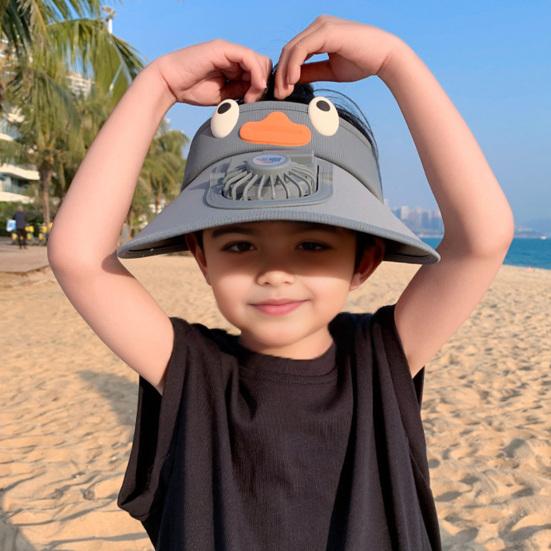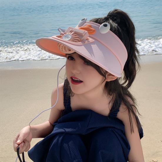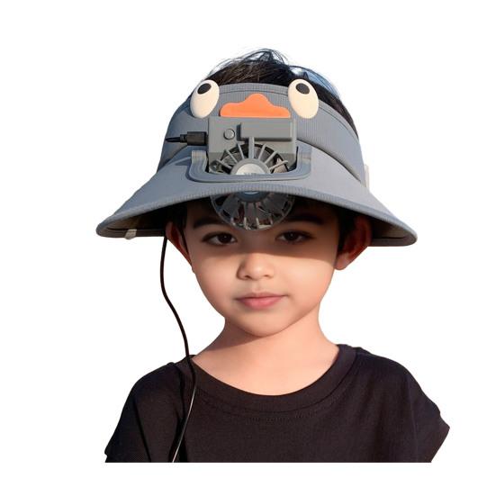 Детская шляпа со встроенным вентилятором, мультяшная форма, очень широкие поля, защита от УФ-лучей, солнцезащитная