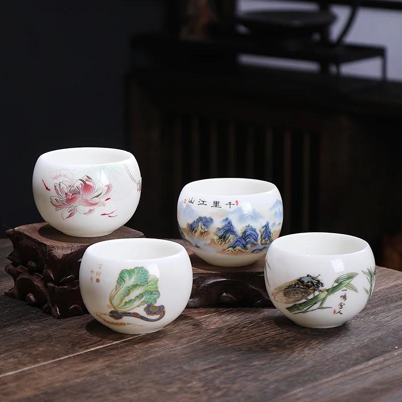 Портативная чашка из белого фарфора с жировым нефритом, чашка со знаком китайского зодиака, чайная чашка ручной работы, керамическая индивидуальная чашка, мастер-чашки для чая