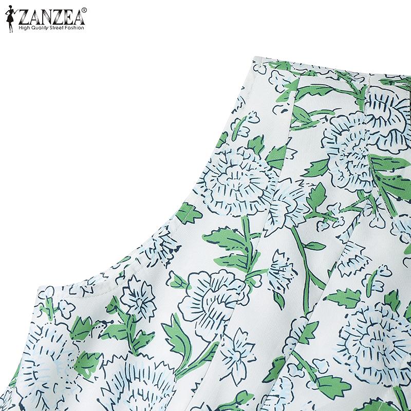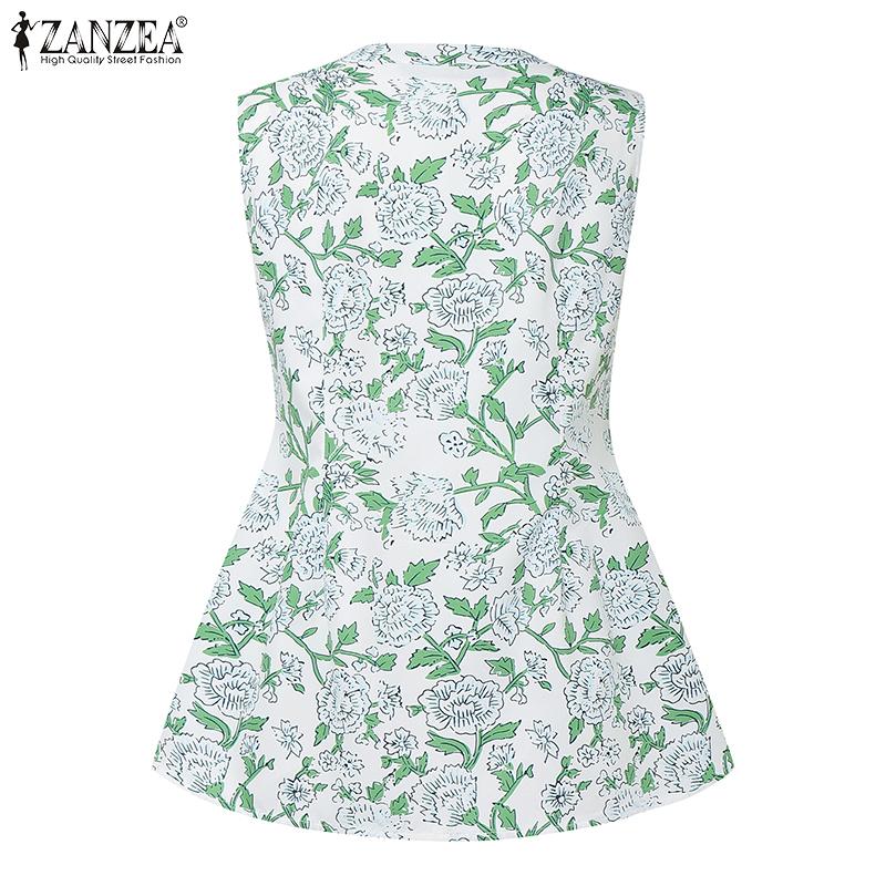 ZANZEA Женские летние топы без рукавов с круглым вырезом и повседневным цветочным принтом