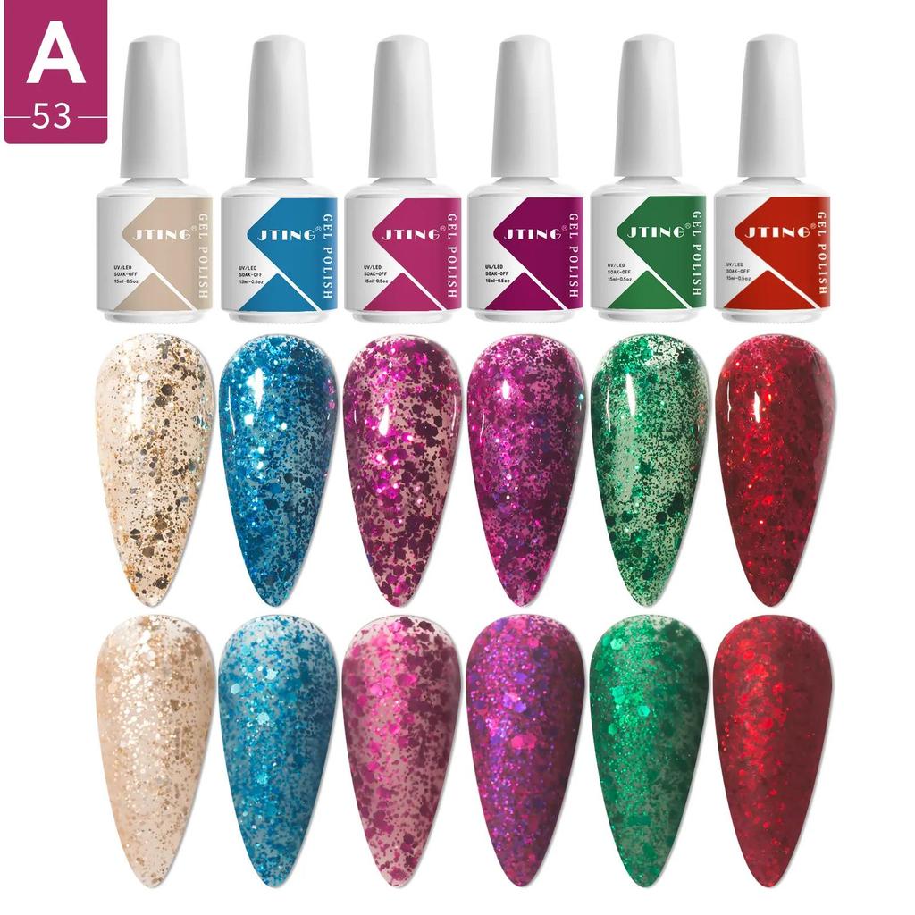 JTING Фабричный поставщик материалов для ногтей Набор гель-лаков для ногтей 6 цветов OEM Частная марка 15 мл УФ-гель-лак Индивидуальный логотип бренда