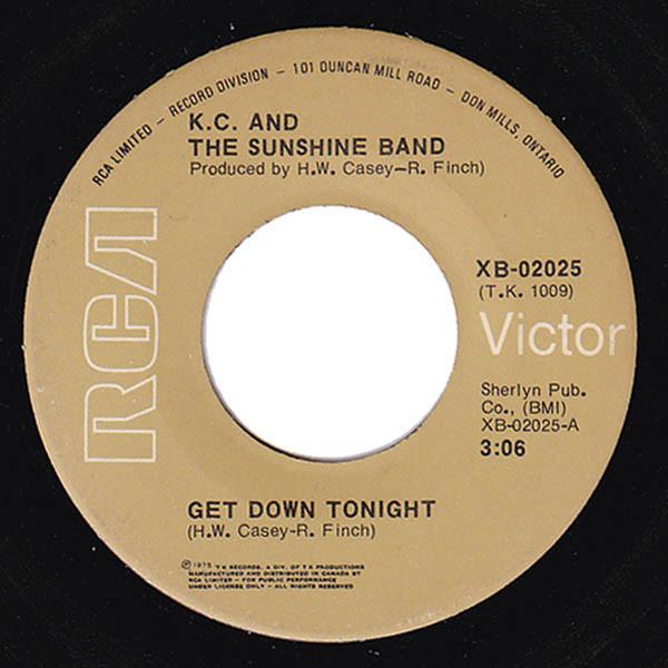 7inch Record K.C. & THE SUNSHINE BAND - Get Down Tonight XB02025 RCA Victor 1975 Canada Soul/Funk Used